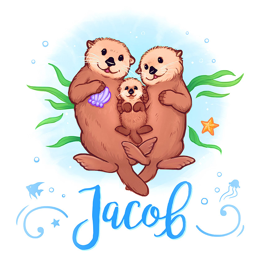 Sea otter illustration commission for new baby's nursery.